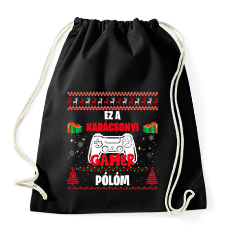 1 kép PRINTFASHION Ez a karácsonyi gamer pólóm - Sportzsák, Tornazsák - Fekete