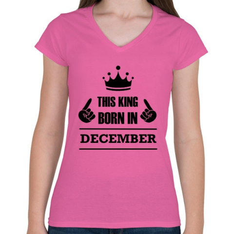 1 kép PRINTFASHION Ez a király decemberben született - Női V-nyakú póló - Rózsaszín