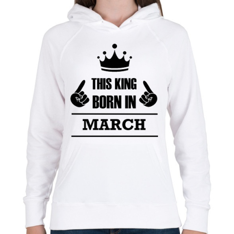 1 kép PRINTFASHION Ez a király márciusban született - Női kapucnis pulóver - Fehér