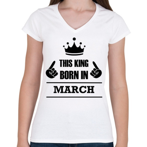 1 kép PRINTFASHION Ez a király márciusban született - Női V-nyakú póló - Fehér