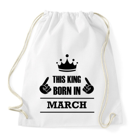 1 kép PRINTFASHION Ez a király márciusban született - Sportzsák, Tornazsák - Fehér