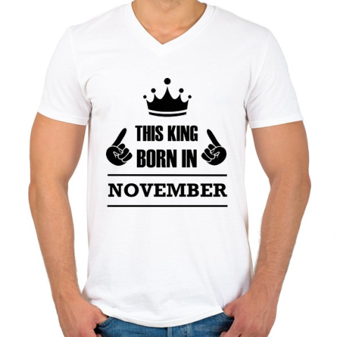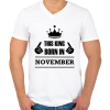 1 kép PRINTFASHION Ez a király novemberben született - Férfi V-nyakú póló - Fehér