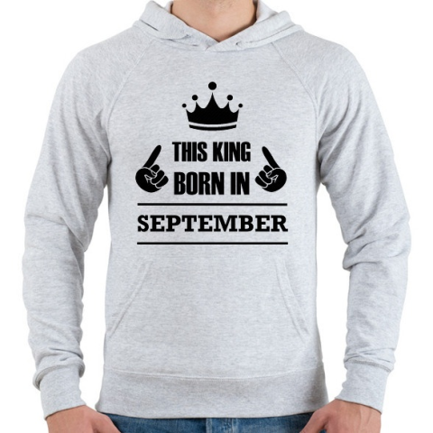1 kép PRINTFASHION Ez a király szeptemberben született - Férfi kapucnis pulóver - Sport szürke