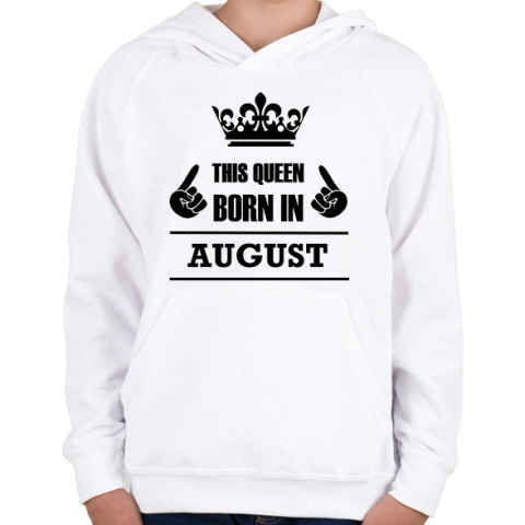 1 kép PRINTFASHION Ez a királynő augusztusban született - Gyerek kapucnis pulóver - Fehér