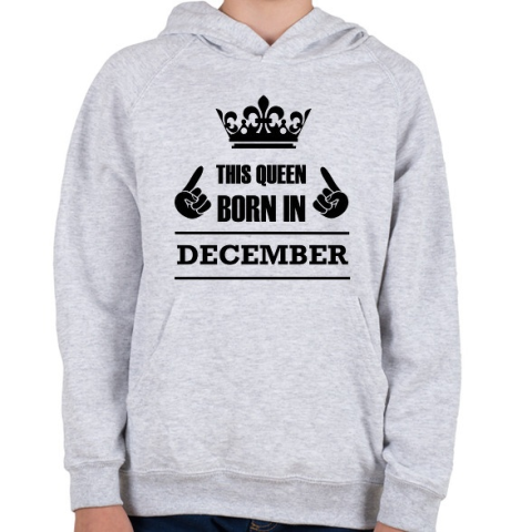 1 kép PRINTFASHION Ez a királynő decemberben született - Gyerek kapucnis pulóver - Sport szürke