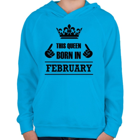 1 kép PRINTFASHION Ez a királynő februárban született - Gyerek kapucnis pulóver - Azúrkék