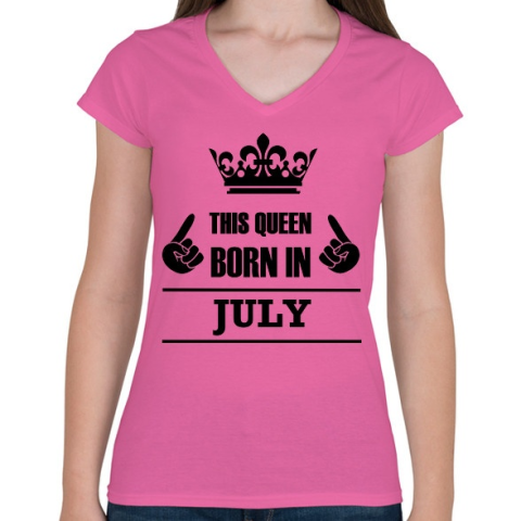 1 kép PRINTFASHION Ez a királynő júliusban született - Női V-nyakú póló - Rózsaszín