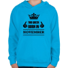 1 kép PRINTFASHION Ez a királynő novemberben született - Gyerek kapucnis pulóver - Azúrkék