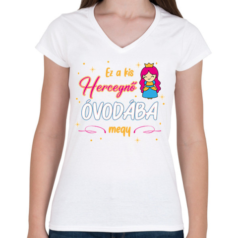 1 kép PRINTFASHION Ez a kis hercegnő - Női V-nyakú póló - Fehér