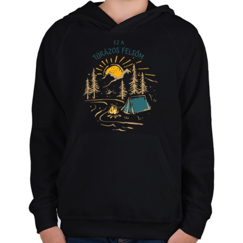 1 kép PRINTFASHION Ez a túrázós felsőm - Gyerek kapucnis pulóver - Fekete