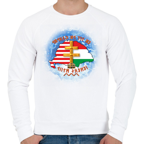 1 kép PRINTFASHION Ez itt az őshaza - Férfi pulóver - Fehér