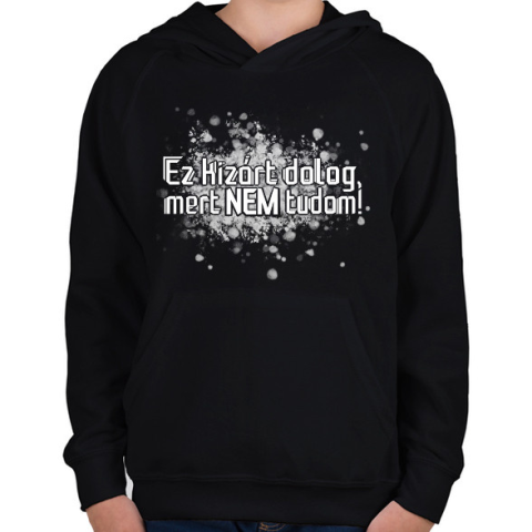 1 kép PRINTFASHION Ez kizárt dolog, mert nem tudom! - Gyerek kapucnis pulóver - Fekete