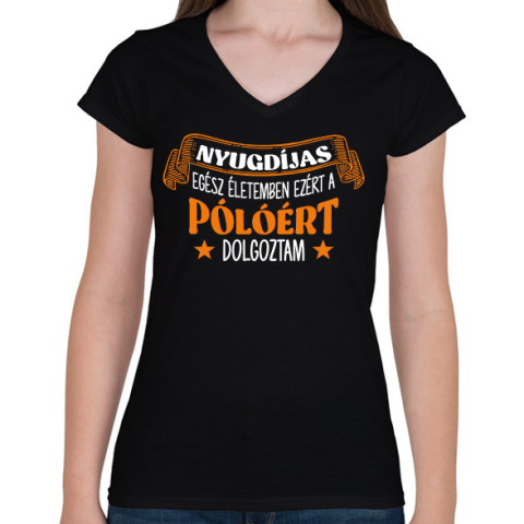1 kép PRINTFASHION Ezért a pólóért dolgoztam - Női V-nyakú póló - Fekete