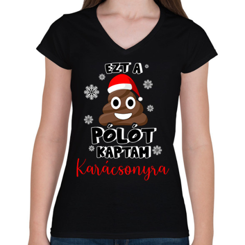 1 kép PRINTFASHION Ezt a szar pólót kaptam karácsonyra - Női V-nyakú póló - Fekete