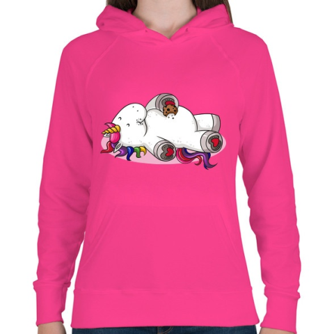 1 kép PRINTFASHION Falánk egyszarvú - Női kapucnis pulóver - Fukszia