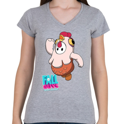 1 kép PRINTFASHION Fall Guys - Chicken - Női V-nyakú póló - Sport szürke