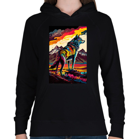 1 kép PRINTFASHION Farkas a hegyvidéken színes - Női kapucnis pulóver - Fekete
