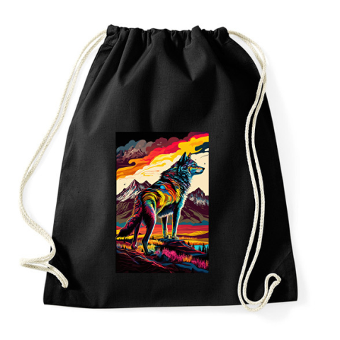 1 kép PRINTFASHION Farkas a hegyvidéken színes - Sportzsák, Tornazsák - Fekete