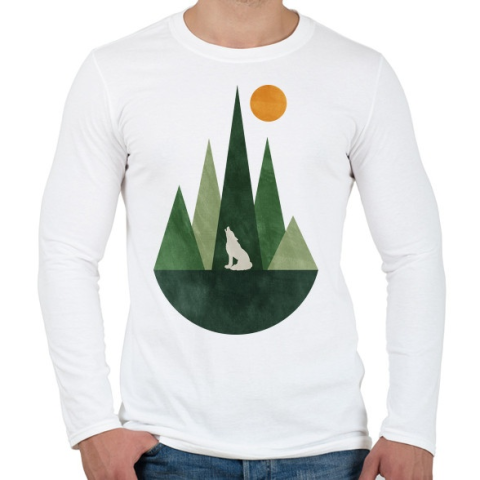 1 kép PRINTFASHION Farkas és a hegyek 4 - Férfi hosszú ujjú póló - Fehér