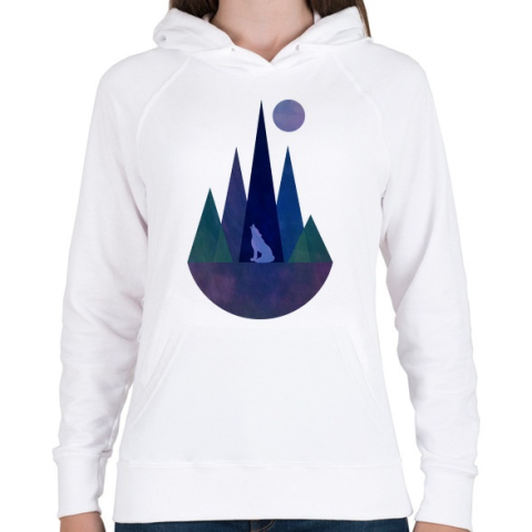 1 kép PRINTFASHION Farkas és hegyek 1 - Női kapucnis pulóver - Fehér