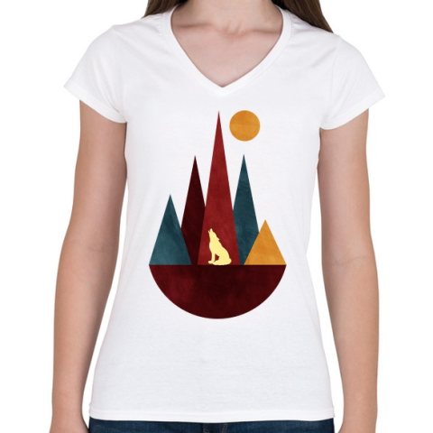 1 kép PRINTFASHION Farkas és hegyek 3 - Női V-nyakú póló - Fehér
