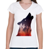 1 kép PRINTFASHION Farkas és hold - Női V-nyakú póló - Fehér