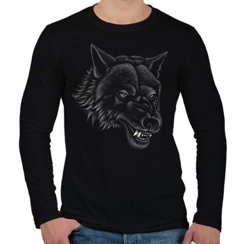1 kép PRINTFASHION farkas - Férfi hosszú ujjú póló - Fekete