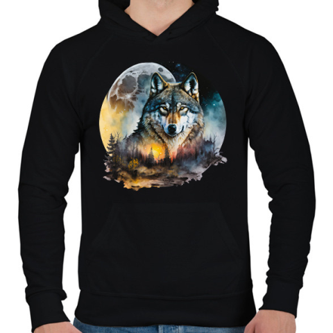 1 kép PRINTFASHION Farkas - Férfi kapucnis pulóver - Fekete