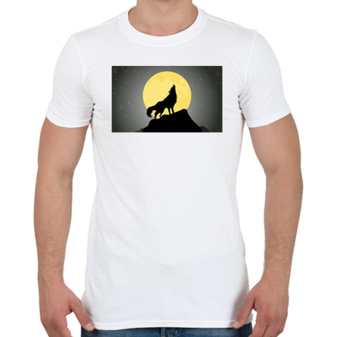 1 kép PRINTFASHION farkas - Férfi póló - Fehér
