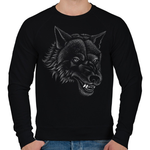 1 kép PRINTFASHION farkas - Férfi pulóver - Fekete