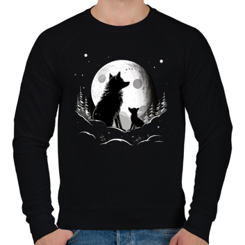1 kép PRINTFASHION farkas - Férfi pulóver - Fekete