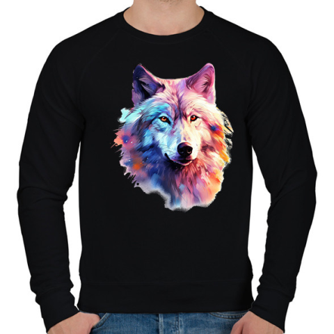1 kép PRINTFASHION farkas - Férfi pulóver - Fekete