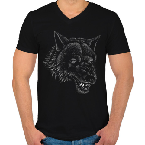 1 kép PRINTFASHION farkas - Férfi V-nyakú póló - Fekete