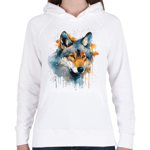 1 kép PRINTFASHION farkas - Női kapucnis pulóver - Fehér