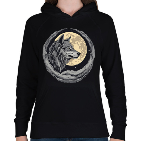 1 kép PRINTFASHION Farkas - Női kapucnis pulóver - Fekete