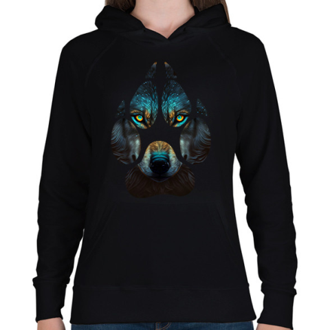 1 kép PRINTFASHION Farkas - Női kapucnis pulóver - Fekete