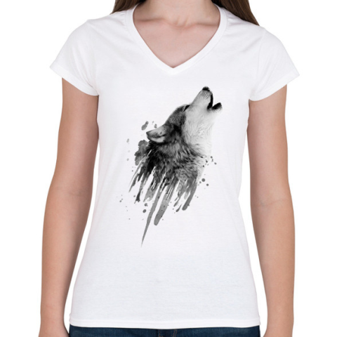 1 kép PRINTFASHION Farkas - Női V-nyakú póló - Fehér