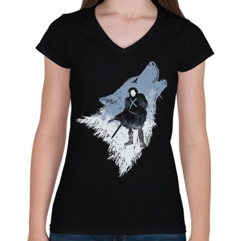 1 kép PRINTFASHION Farkas - Női V-nyakú póló - Fekete