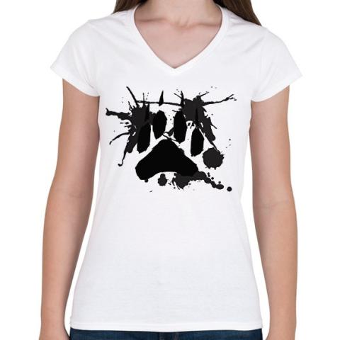 1 kép PRINTFASHION Farkas talp - Női V-nyakú póló - Fehér