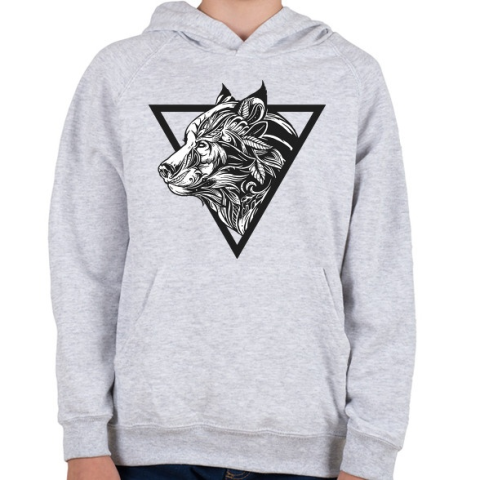 1 kép PRINTFASHION Farkas tetoválás - Gyerek kapucnis pulóver - Sport szürke