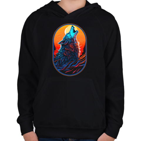 1 kép PRINTFASHION Farkas üvöltés a teliholdnál - Gyerek kapucnis pulóver - Fekete