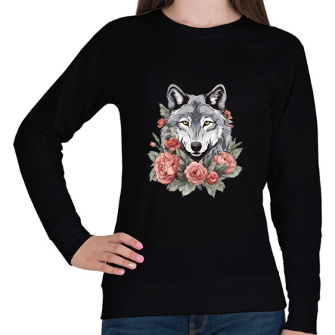 1 kép PRINTFASHION farkas virágokkal #2 - Női pulóver - Fekete