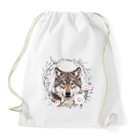 1 kép PRINTFASHION farkas virágokkal - Sportzsák, Tornazsák - Fehér