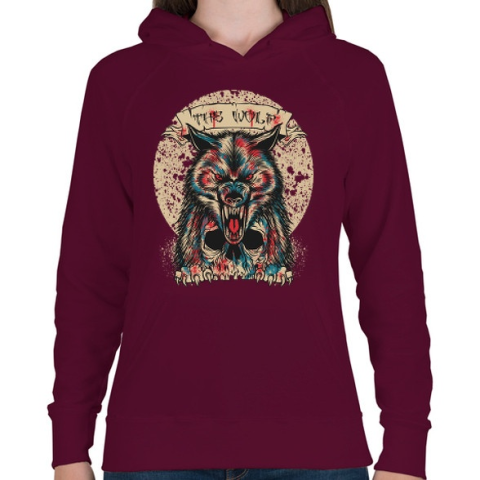 1 kép PRINTFASHION Farkaskoponya - Női kapucnis pulóver - Bordó