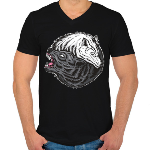 1 kép PRINTFASHION Farkasos - Férfi V-nyakú póló - Fekete