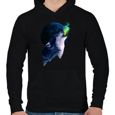 1 kép PRINTFASHION Farkasüvöltés - Férfi kapucnis pulóver - Fekete