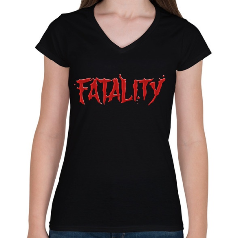 1 kép PRINTFASHION Fatality - Női V-nyakú póló - Fekete