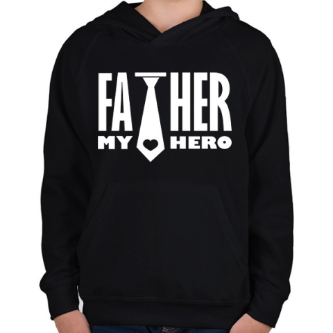 1 kép PRINTFASHION Father is my hero - Gyerek kapucnis pulóver - Fekete