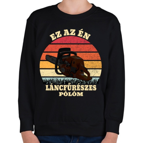 1 kép PRINTFASHION Favágó / Láncfűrész - Gyerek pulóver - Fekete