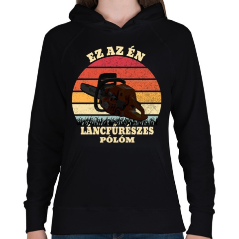 1 kép PRINTFASHION Favágó / Láncfűrész - Női kapucnis pulóver - Fekete